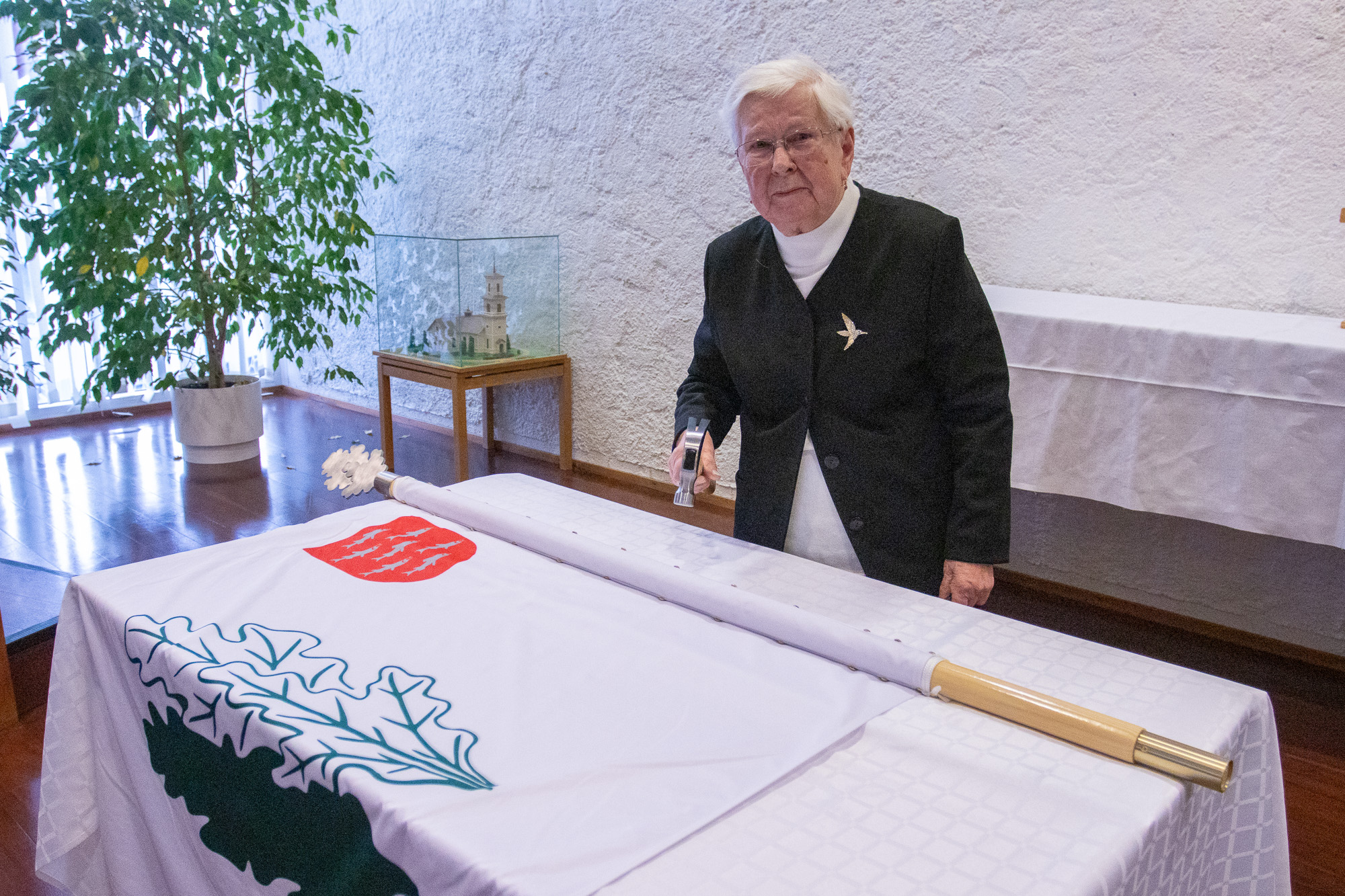 Veteraaniperinnetyön jatkaminen Viitasaarella sai oman tunnuksen tänään sunnuntaina juhlallisin menoin, kun Tammenlehvän Viitasaaren perinnetoimikunnan oma lippu naulattiin ja siunattiin käyttöön. Valtakunnallisen Tammenlehvän Perinneliiton mukainen lippu Viitasaaren vaakunalla kiinnitettiin 22 naulalla, jotka edustavat sodan kokemaan joutuneita sukupolvia ja perinnetyöhön osallistuvia eri tahoja.